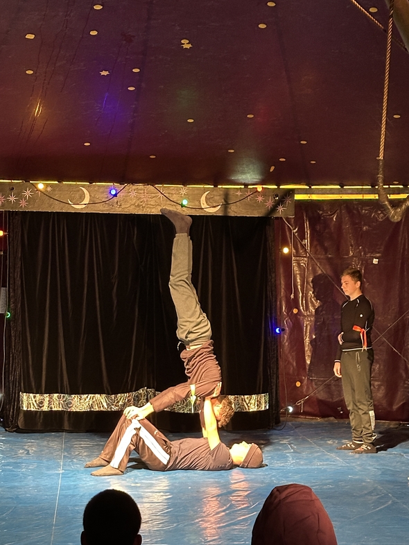 Zum Abschluss der Projektwoche gab es gleich zwei Aufführungen: vormittags zur Hauptprobe kamen die Kinder der Schulen aus Bözen und Effingen und bestaunten die Darbietungen der Jungs aus dem Schulheim und abends kamen Eltern, Geschwister, Verwandte und der Stiftungsrat, füllten das Zirkuszelt und bestaunten, was die Kinder in nur so kurzer Zeit erarbeitet haben.